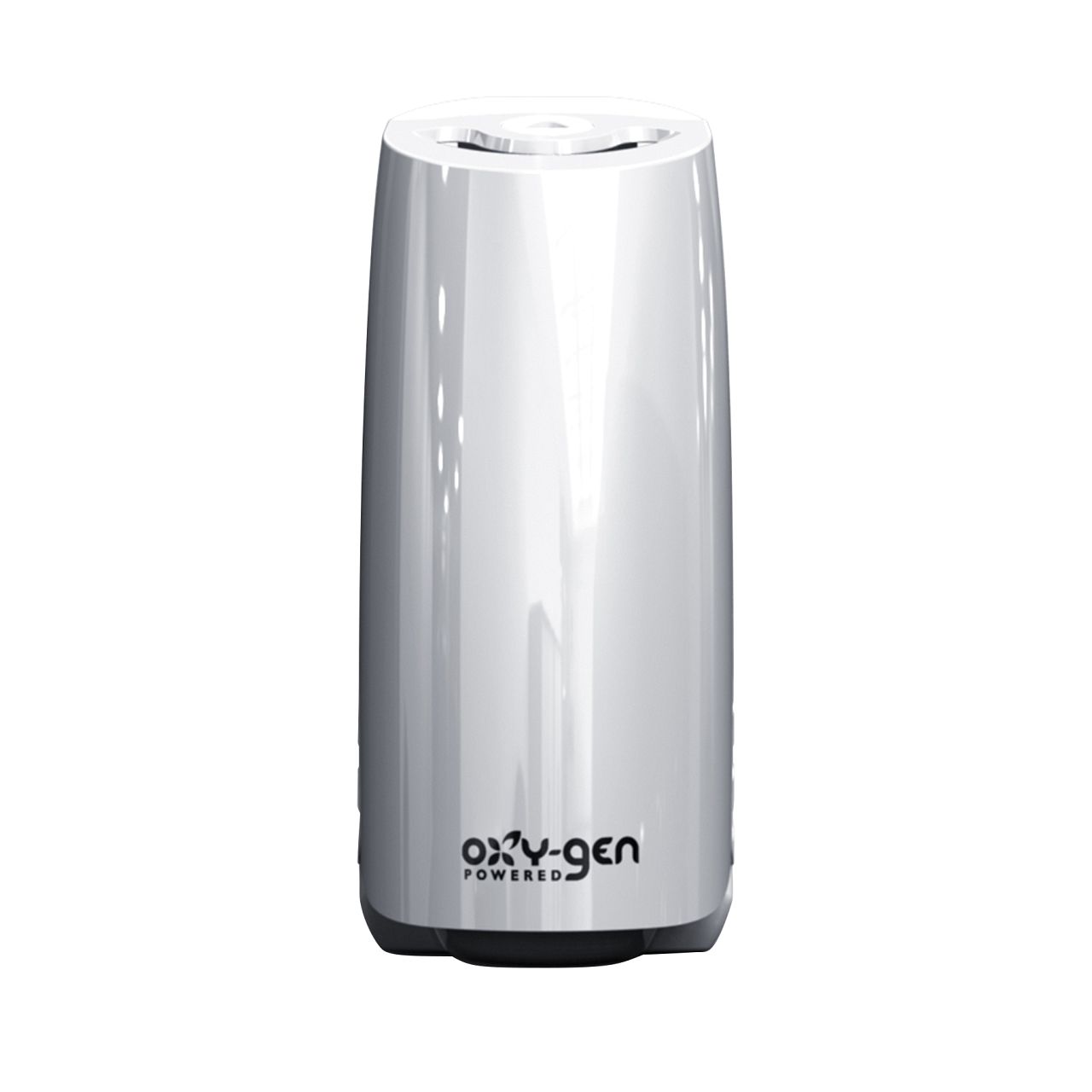 De Oxy-Gen dispenser in de kleur wit geeft gedoseerd een impuls waardoor parfum vrijkomt. Dit in combinatie met de natuurlijke luchtstroom, zorgt voor een optimale geurbeleving. De dispensers zijn eenvoudig te installeren en na te vullen en hebben een stijlvol design. De batterij heeft een levensduur van 18 tot 24 maanden. De Oxy-Gen is de nieuwe generatie onder de luchtverfrissers. Deze luchtverfrisser maakt gebruik van een nieuwe technologie, zonder spuitbus, of verstuivingstechniek. Er is geen uitstoot van schadelijke stoffen, oplosmiddelen of drijfgassen.