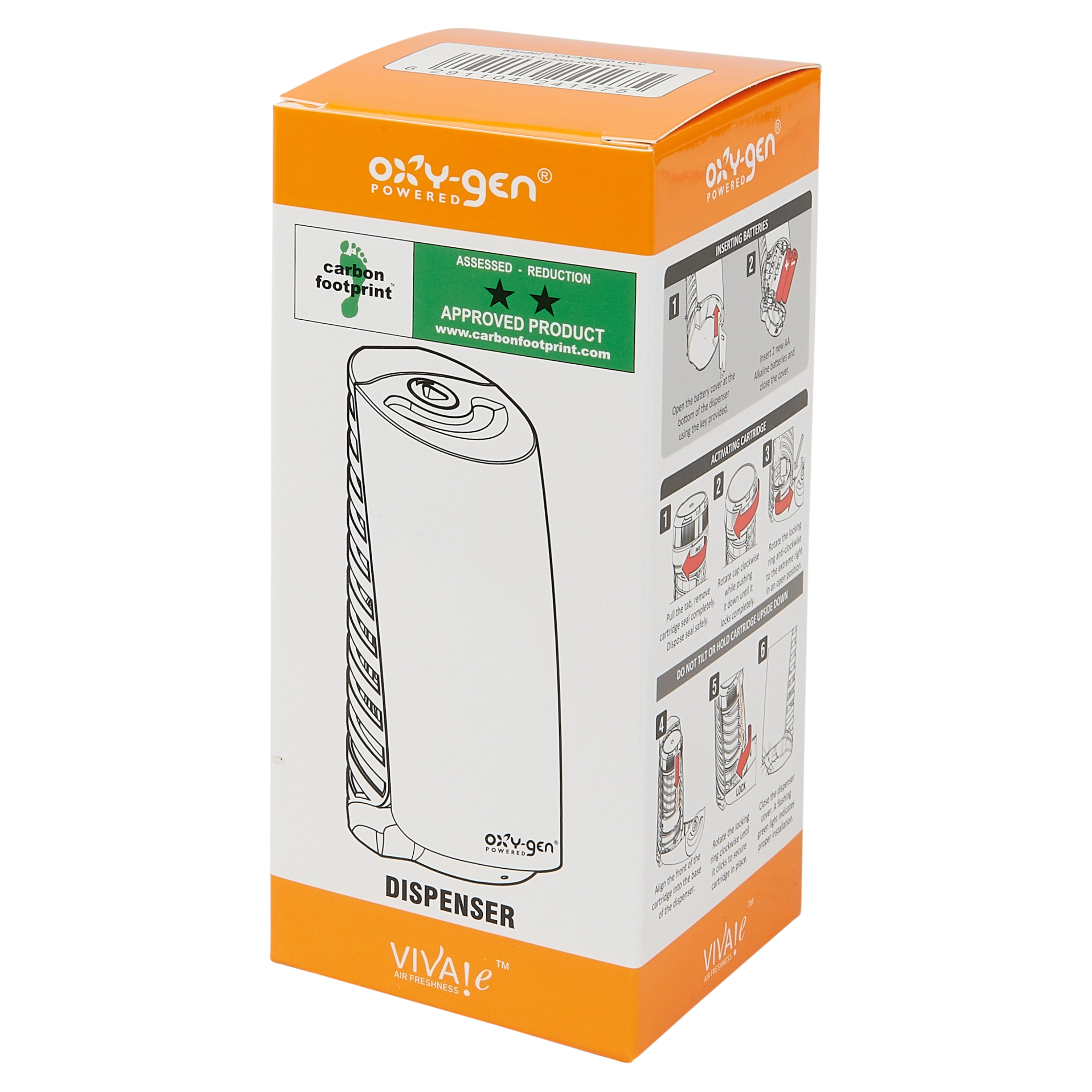 De Oxy-Gen dispenser met een RVS-look geeft gedoseerd een impuls waardoor parfum vrijkomt. Dit in combinatie met de natuurlijke luchtstroom, zorgt voor een optimale geurbeleving. De dispensers zijn eenvoudig te installeren en na te vullen en hebben een stijlvol design. De batterij heeft een levensduur van 18 tot 24 maanden. De Oxy-Gen is de nieuwe generatie onder de luchtverfrissers. Deze luchtverfrisser maakt gebruik van een nieuwe technologie, zonder spuitbus, of verstuivingstechniek. Er is geen uitstoot van schadelijke stoffen, oplosmiddelen of drijfgassen.